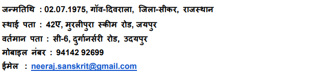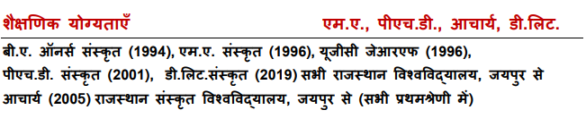 *Served as Sanskrit Faculty in the Govt. Degree Colleges of Haryana for22 years (12.10.1988-15.9.2010)