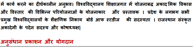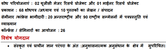 and Sahityacharya, he joined as Lecturer in Sanskrit in DAV College, Pehowa in 1988 and joined as Associate Professor in Department of Sanskrit in 2007 and was promoted as Professor in 2010. Since then he has been member of UG and PG board of studies in various Universities, has delivered lectures as resource person in different colleges and has attended many seminars and conferences. He has guided more then 10 phd students and has achieved many awards for his research contribution in the field of Sanskrit Literature. Recently he has been awarded with Vedavyas Samman (2018) for his book. Along with this he is a humble person and a very good teacher.